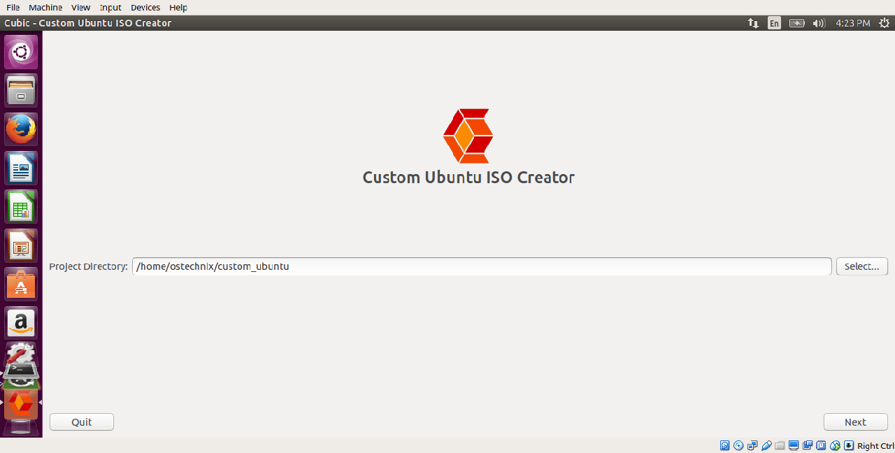 安装完成后,从应用程序菜单或 dock 启动 Cubic。这是在我在 Ubuntu 16.04 LTS 桌面系统中 Cubic 的样子。