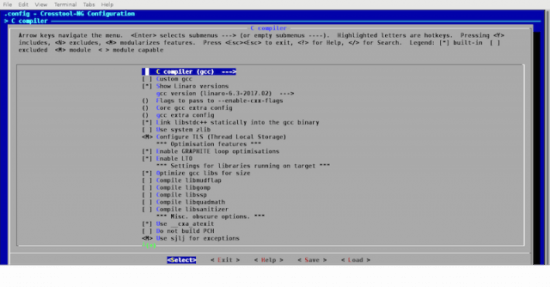 交叉编译工具链的组件可以手工构建,但这是一个很复杂的过程。幸运的是,现有的工具可以很容易地完成这一过程。构建交叉编译工具链的最好工具可能是 Crosstool-NG,这个工具使用了与 Linux 内核相同的 kconfig 菜单系统来构建工具链的每个细节和方面。使用这个工具的关键是,为目标平台找到正确的配置项。配置项通常包含下列内容: