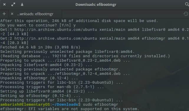在基于 Debian 和 Ubuntu 的发行版中,你可以使用以下命令安装 efibootmgr 包: