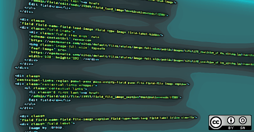 到现在为止还挺好。我原以为下一步就可以搞定了,但是当我在脚本中尝试了一些字符串方法时,它返回了有关标记的错误而不是字符串的错误。 我将输出保存到一个文件中,并在 KWrite 中进行编辑。 KWrite 的一个好处是你可以使用正则表达式(regex)来做“查找和替换”操作,所以我可以用 \n<img 替换 <img,这样可以看得更清楚。 KWrite 的另一个好处是,如果你用正则表达式做了一个不明智的选择,你还可以撤消。