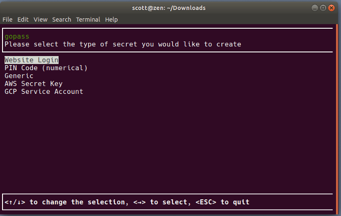 当你第一次启动 gopass 时,你需要创建一个密码存储库并生成一个密钥以确保存储的安全。当你想添加一个密码(gopass 中称之为“secret”)时,gopass 会要求你提供一些信息,比如 URL、用户名和密码。你可以让 gopass 为你添加的“secret”生成密码,或者你可以自己输入密码。