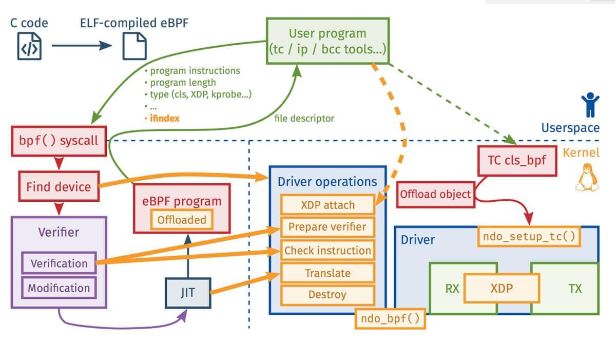 - 发送 BPF 字节码到 Linux 内核,由 Linux 内核验证它