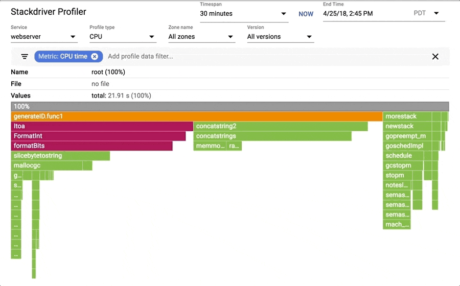 我简单研究了 Stackdriver Profiler,这是我们的新产品,它填补了针对云端用户在云服务范围内分析服务的空白。请注意,你无需在 Google 云平台上运行你的代码即可使用它。实际上,我现在每天都在开发时使用它。它也支持 Java 和 Node.js。