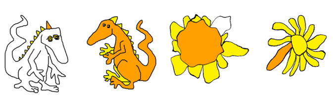 现在有一种非机器学习的方法来解决我的问题。我可以告诉一个孩子,我想怎么给我的画上色:把花的中心画成橙色,把花瓣画成黄色,把龙的身体画成橙色,把龙的尖刺画成黄色。