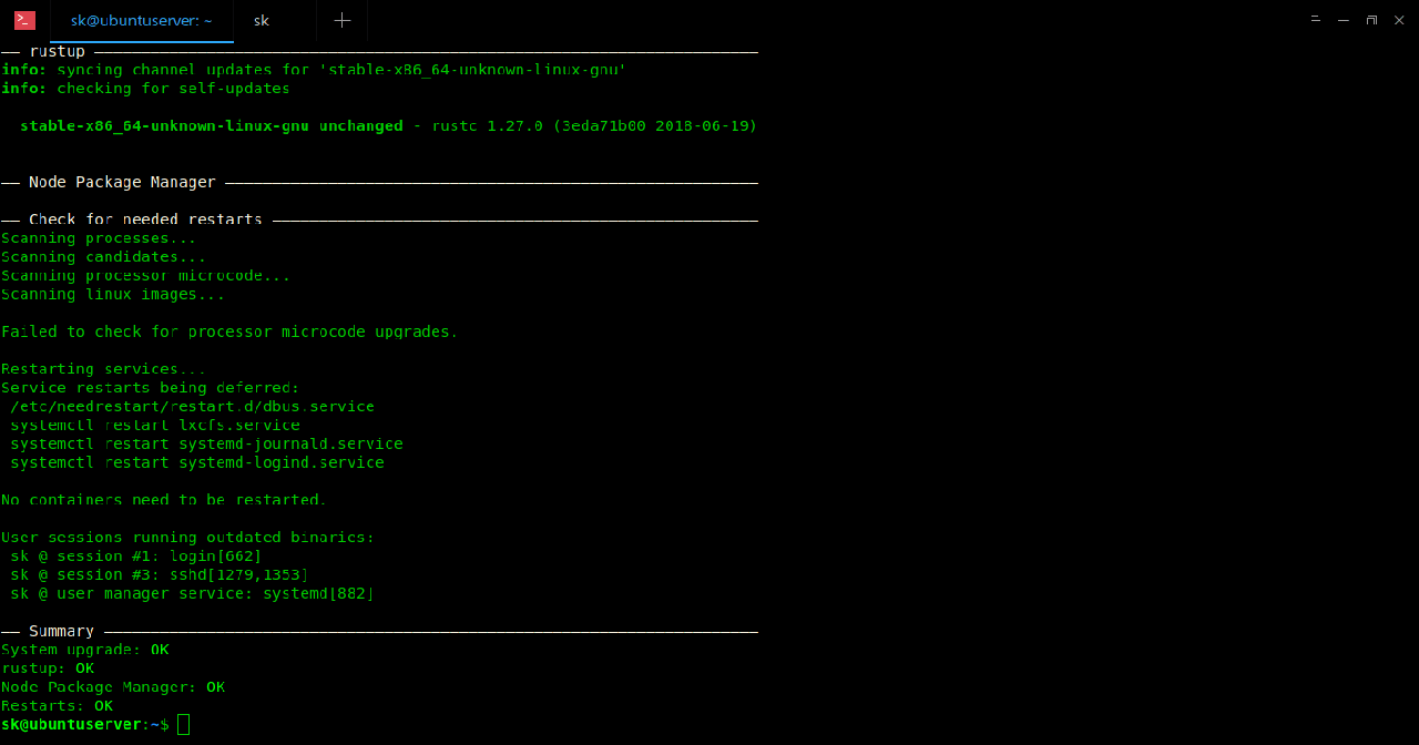 最后,topgrade 将运行 needrestart 以重新启动所有服务。在 Mac OS X 中,它会升级 App Store 程序。