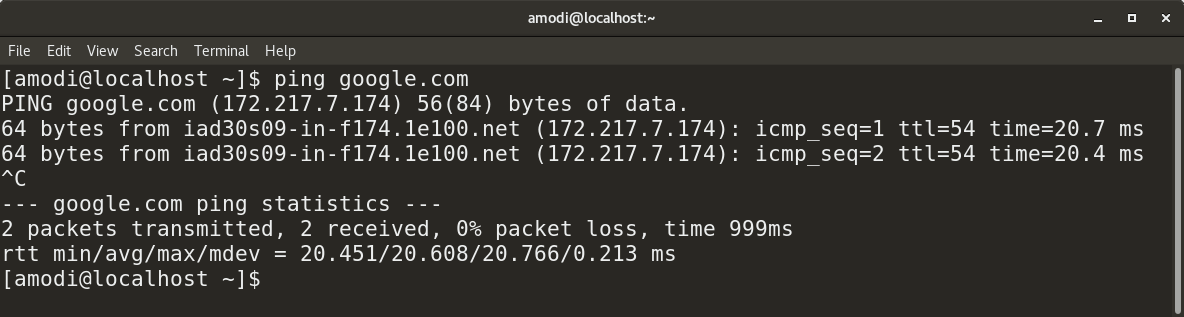 正如它的名字所表示的那样,ping 是用于去检查从你的系统到你想去连接的系统之间端到端的连通性。当一个 ping 成功时,它使用的 ICMP 的 echo 包将会返回到你的系统中。它是检查系统/网络连通性的一个良好开端。你可以在 IPv4 和 IPv6 地址上使用 ping 命令。(阅读我的文章 "如何在 Linux 系统上找到你的 IP 地址" 去学习更多关于 IP 地址的知识)