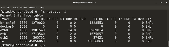 * netstat -i 显示每个接口传输/接收(TX/RX)包的统计数据。