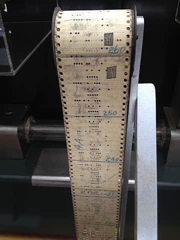 一个“补丁”指的是文件之间一系列差异,这些差异能被 Unix 的 diff 程序应用在源代码树上。我们能使用 diff 工具来创建“差异”(或“补丁”),然后使用该工具将它们 “打” 在一个没有这个补丁的同样的源代码版本上。此外,(我又要开始跑题说些历史轶事了……),“补丁” 这个词真的指在计算机的早期使用打卡机的时候,用来覆盖在打孔纸带上来对软件进行修改的覆盖纸,那个时代打孔纸带就是在计算机处理器上运行的程序。下面来自 维基页面 的这张图真切的描绘了最初的“打补丁”这个词的出处: