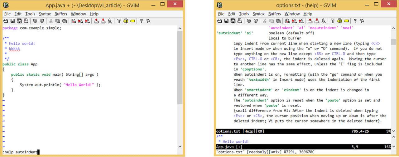 注意:Vim 具有语言感知功能,且其默认设置可以基于文件中的编程语言来改变配置以提高效率。有许多默认的配置选项,包括 axs cindent,cinoptions,indentexpr 等,没有在这里说明。 syn 是一个非常有用的命令,用于设置文件的语法以更改显示模式。