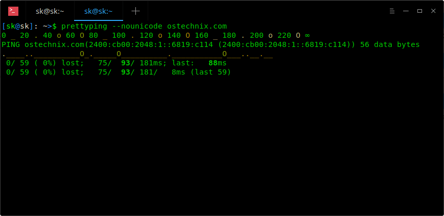 $ prettyping ostechnix.com | tee ostechnix.txt