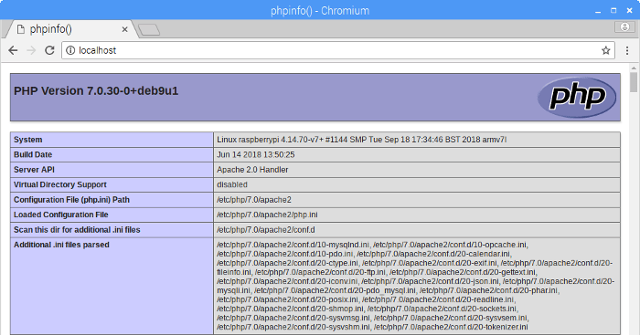 保存、退出、刷新你的网页。你将会看到 PHP 状态页: