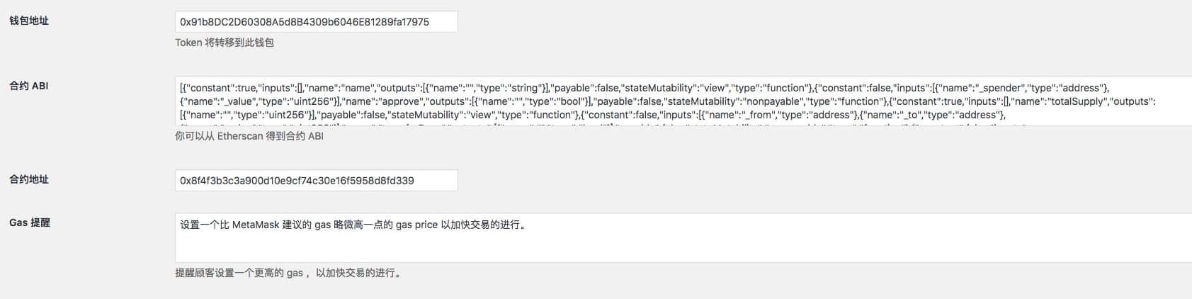 启用插件后,点击左侧菜单中的“设置”-“WooCommerce ERC20 货币自定义”,进入到插件的设置界面。