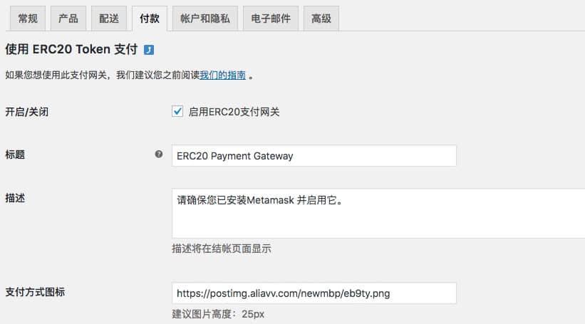 安装,并启用 “Woocommerce Customize ERC20 Currency”。