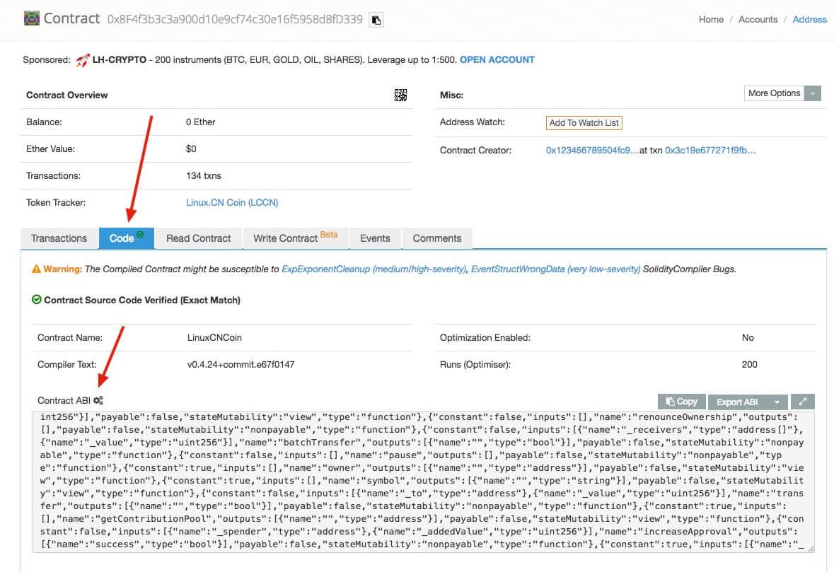 合约 ABI 则可以在 etherscan 中找到,比如,LCCN 的合约地址为:https://etherscan.io/address/0x8f4f3b3c3a900d10e9cf74c30e16f5958d8fd339#code,由于 LCCN 公开了其合约源代码,其 ABI 可以在合约的界面找到(如未公开,请向你的 ERC20 合约开发人员索要 ABI),点击右侧 “Copy”,复制 ABI,并将其填入设置项目中去。