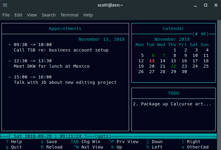 使用 Calcurse 可以轻松地在命令行中进行组织任务。Calcurse 在基于文本的界面里带来了图形化外观。你可以得到简单、结合易用性的命令行和导航。