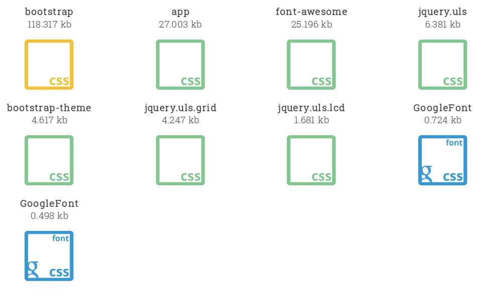 下一个问题是,我们必须要这样一个 bootstrap.css 和 font-awesome.css 吗?或者,它们能不能合起来呢?没错,它们可以。这样虽然不会节省更多的文件空间,但浏览器成功渲染页面所需要发起的请求更少了。