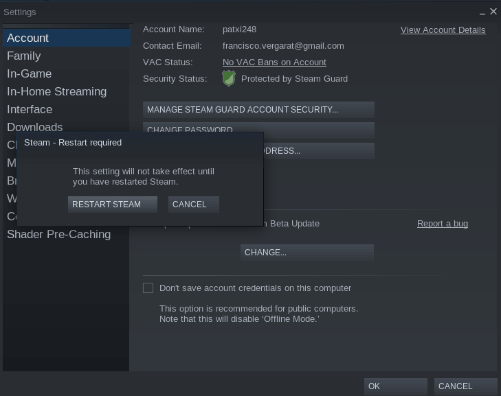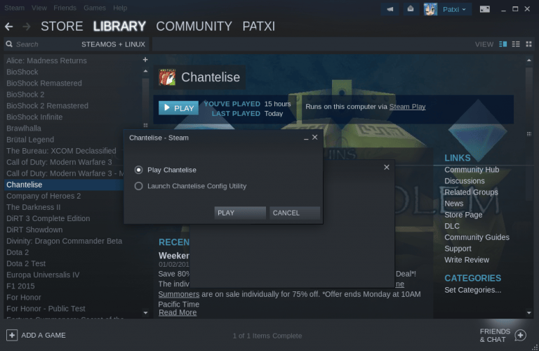 Steam 客户端会要求你重新启动,照做,然后重新登录你的 Steam 账户,你的 Linux 的游戏库就能得到扩展了。