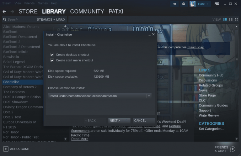 现在你已经启用 Proton,开始安装游戏,选择你想要安装的游戏,然后你会发现这个安装过程类似于在 Steam 上安装一个普通游戏,如下面这些截图所示。