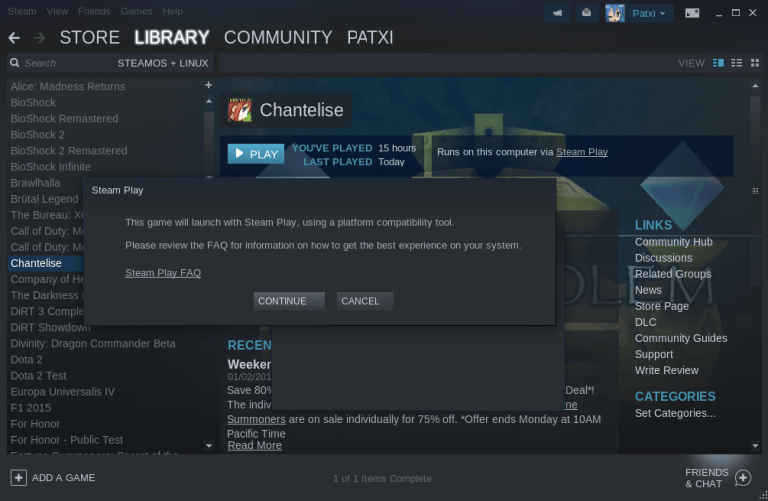 之前,Steam 宣布要给 Steam Play 增加一个新组件,用于支持在 Linux 平台上使用 Proton 来玩 Windows 的游戏,这个组件是 WINE 的一个分支。这个功能仍然处于测试阶段,且并非对所有游戏都有效。这里有一些关于 Steam 和 Proton 的细节。