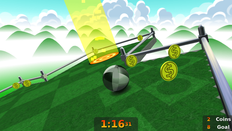 不存在之球 的游戏灵感来源自世嘉的 “ 超级猴子球 ” ,玩家需要将一个球在 3D 球场上运动起来,但是玩家控制的不是球,而是球场。游戏任务是在规定的时限内,收集足够多的金币从而打开该关卡的出口并且将小球落进该洞中。游戏可以调整难度,从休闲到难以超乎想象,可以适应不同的玩家需求。该游戏支持键盘/鼠标以及控制杆操作。