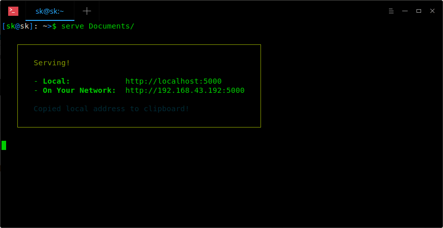 $ serve Documents/