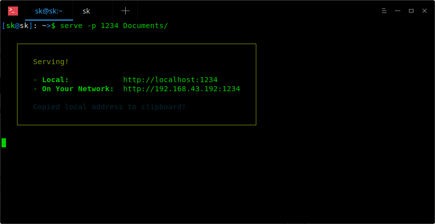 $ serve -p 1234 Documents/