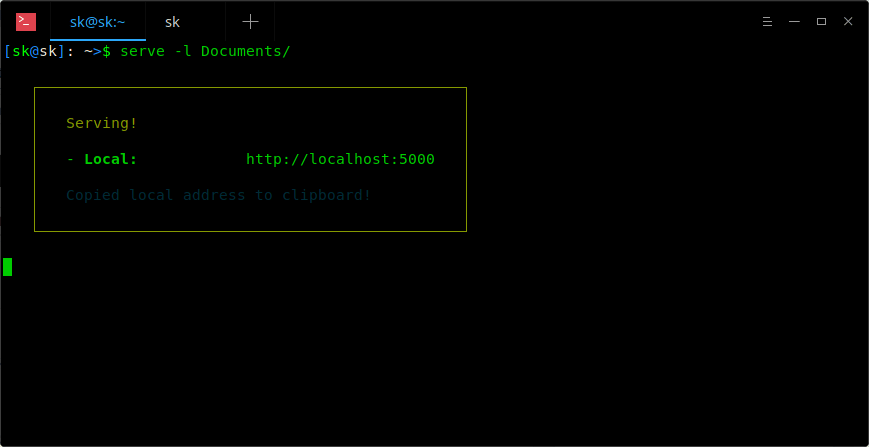 $ serve -l Documents/