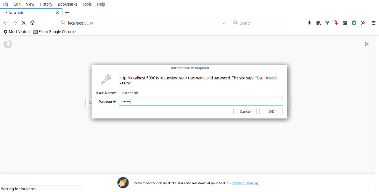 $ SERVE_USER=ostechnix SERVE_PASSWORD=123456 serve --auth