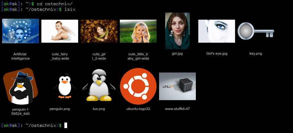 而且,这一切都是唾手可得。如你所见,lsix 与 ls 命令非常相似,但它仅用于显示缩略图。如果你在工作中处理很多图像,lsix 可能会非常方便。试一试,请在下面的评论部分告诉我们你对此实用程序的看法。如果你知道任何类似的工具,也请提出建议。我将检查并更新本指南。
