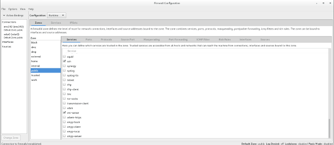勾选 “vnc-server”旁边的选框(如下图所示)关闭窗口。接着直接到你远程电脑上的 Remmina,输入你想连接到的 Linux 桌面的 IP 地址,选择 VNC 作为协议,点击回车键。