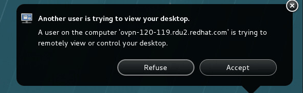 如果你之前选择的验证选项是“新连接必须询问访问许可”,RHEL 系统用户会看到这样的一个弹窗: