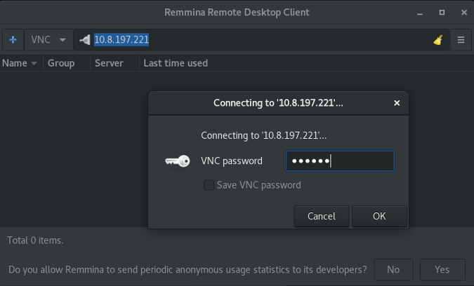 如果你选择用密码验证连接,Remmina 会向你询问密码。