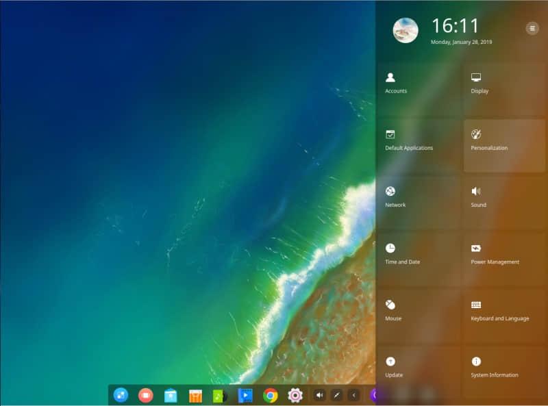 但即使是侧边栏控制面板,也像市场上的任何其他配置工具一样直观。任何使用过移动设备的人对于这种布局都很熟悉。至于打开应用程序,Deepin 的启动器采用了 macOS Launchpad 的方式。此按钮位于桌面底座上通常最右侧的位置,因此用户立即就可以会意,知道它可能类似于标准的“开始”菜单。