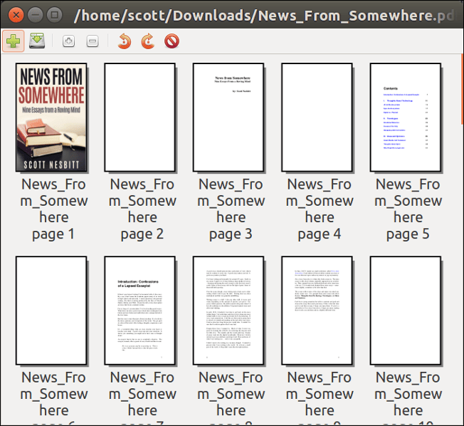 假设你想从 PDF 中提取页面,也许是作为你书中的样本章节。选择 “File > Add”打开 PDF 文件。