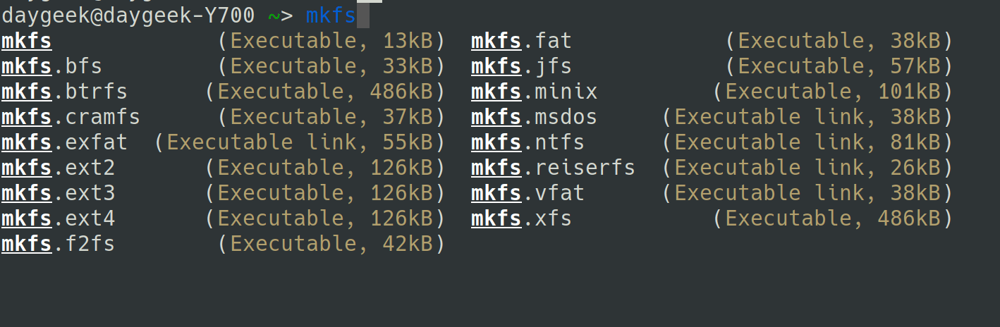 如果你想查看给定命令是否还有其他可能性,那么在键入几个字母后,只需按一下 Tab 键即可。