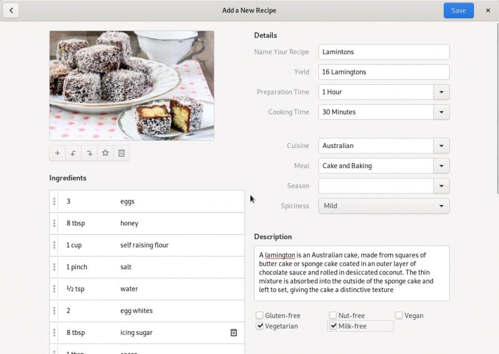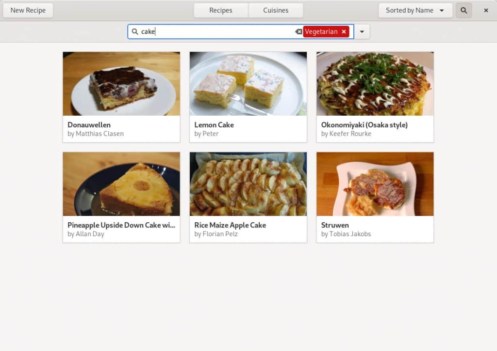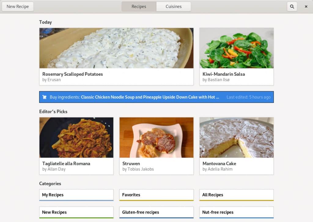 GNOME Recipes 是 GNOME 项目中的食谱管理工具。它有现代 GNOME 应用的视觉风格,类似于 GNOME “软件”,但它是针对食物的。