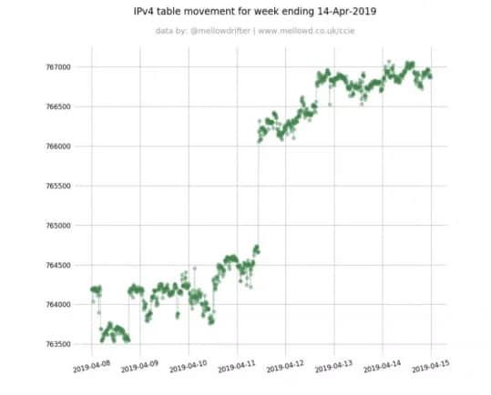 在 512k 日来临之际,许多旧的路由器收到了紧急更新,分配了更多内存去储存 BGP 路由表,而新分配的值是 768k 或 768,000。现在 768k 的限制又要突破了。根据最新的数据,全球路由表已经达到了 767,392,无限接近 768k。
