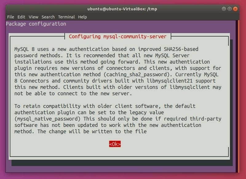 将会展示一些关于 MySQL Server 的配置信息。再次按下 Tab 去选择 “Ok” 和按下回车键: