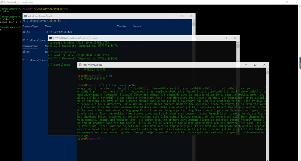 locez@Lenovo-PC~> pycharm64.exe ### 会启动我的 pycharm locez@Lenovo-PC~> git.exe | xargs echo