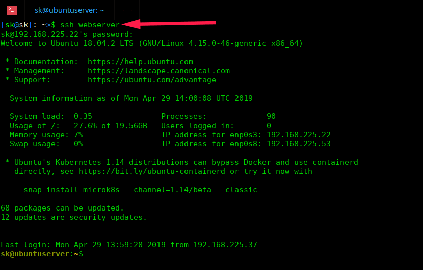 看到了吗?我只使用别名(例如 webserver)来访问 IP 地址为 192.168.225.22 的远程系统。