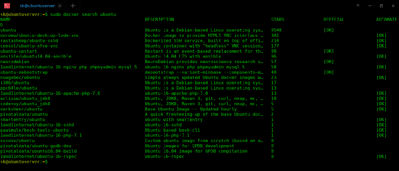 例如,搜索一个基于 Ubuntu 的镜像文件,只需要运行: