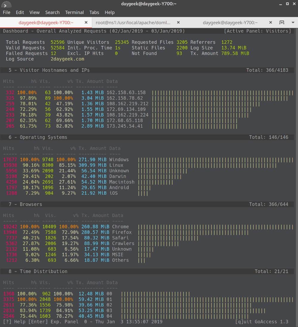 # goaccess -f 2daygeek_access.log --log-format=COMBINED -o 2daygeek.html