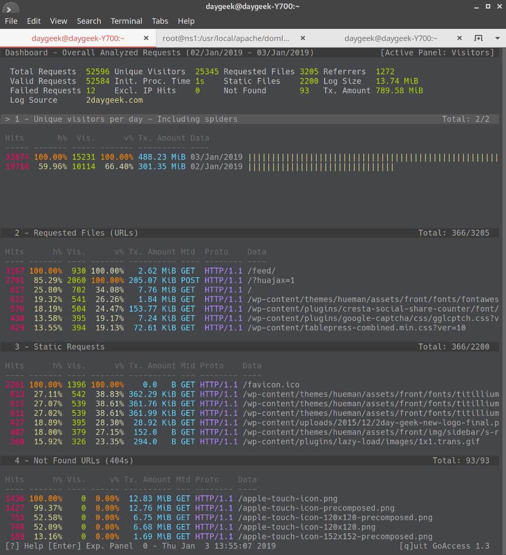 # goaccess [options] /path/to/Web Server/access.log # goaccess /var/log/apache/2daygeek_access.log