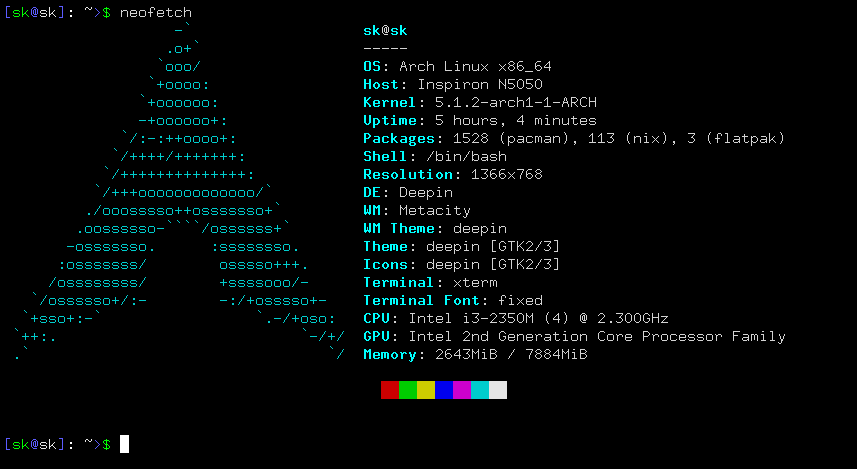 正如你在上面的输出中所看到的,Neofetch 显示了我的 Arch Linux 系统的以下详细信息:
