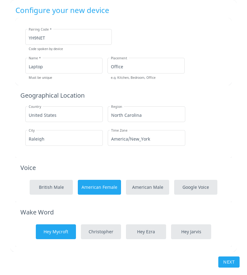 创建帐户后,可以在 https://account.mycroft.ai/devices 中添加新设备。添加新设备需要配对码,你的设备会在所有服务启动后告诉你。