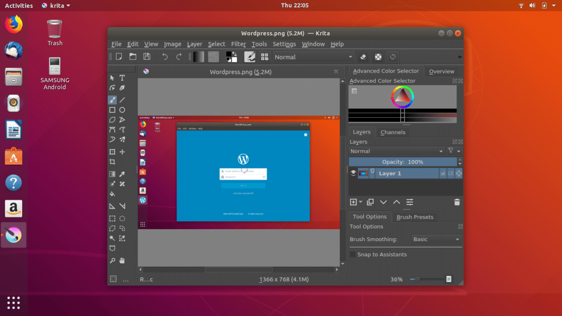 它使用 OpenGL 画布,这提升了 Krita 的性能,并且提供了很多功能,如各种绘画工具、动画工具、矢量工具、层和遮罩等很多。可在 Ubuntu 软件中心获取 Krita 并下载。
