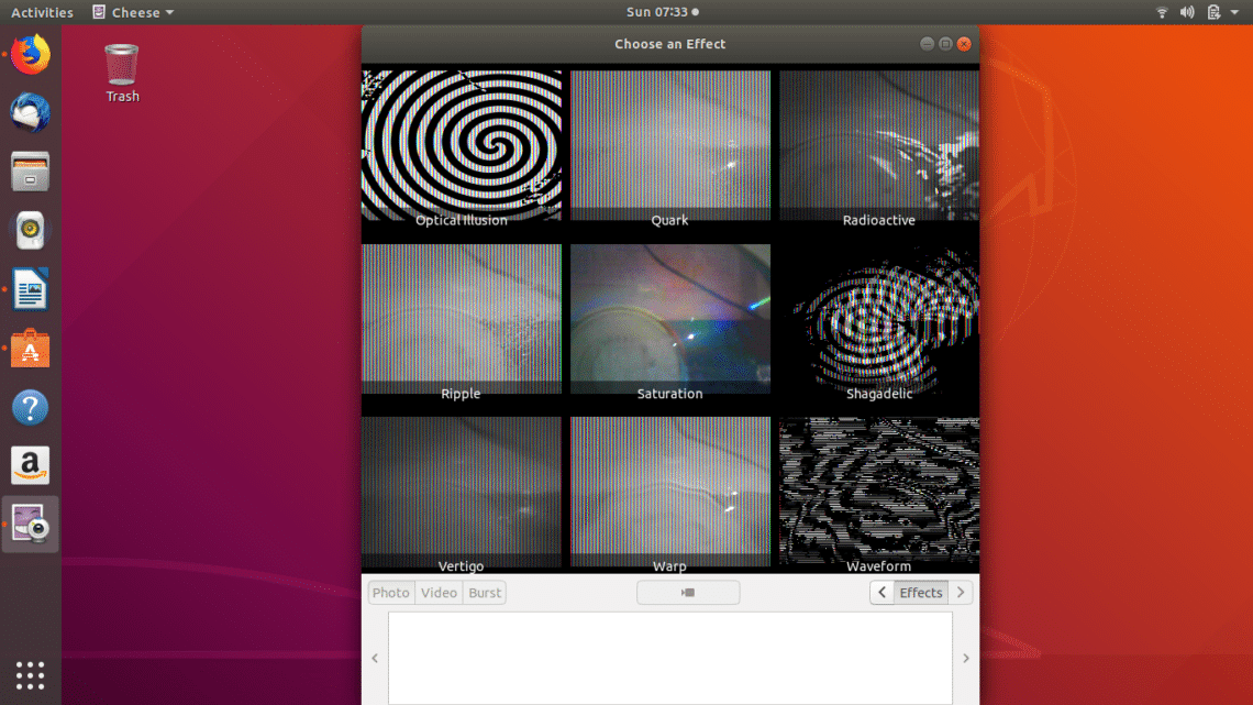 Cheese 是 Linux 默认的网络摄像头应用,在视频聊天或即时消息应用中非常有用。除了这些,你还可以用这个应用来照相或拍视频,附带一些迷人的特效。