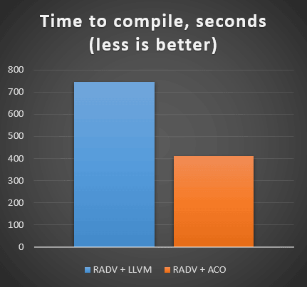 现在,ACO 只处理像素和计算着色器阶段。当其余的阶段实现时,我们预计编译时间将进一步减少。