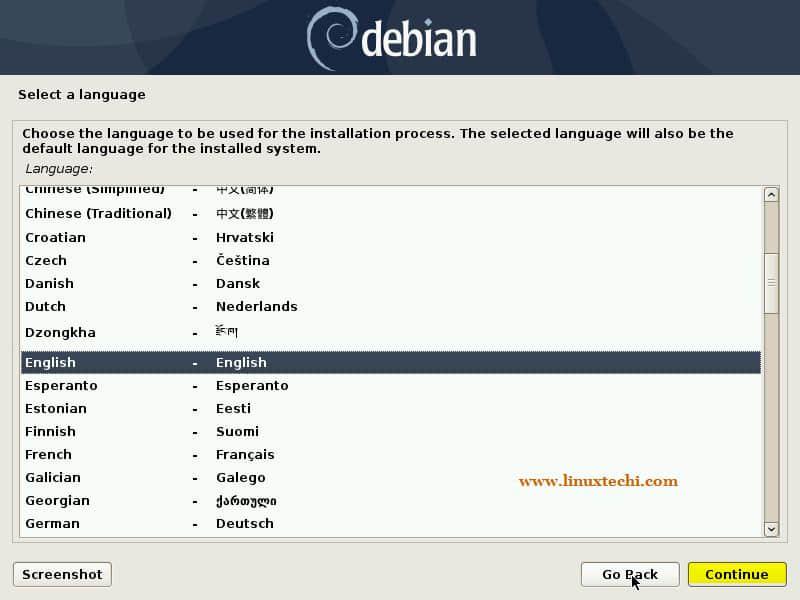 重启你将安装 Debian 10 的电脑,转到 BIOS 设置,并设置启动介质为 USB 或 DVD。 用可启动介质启动电脑后,那么我们将看到下面的屏幕。