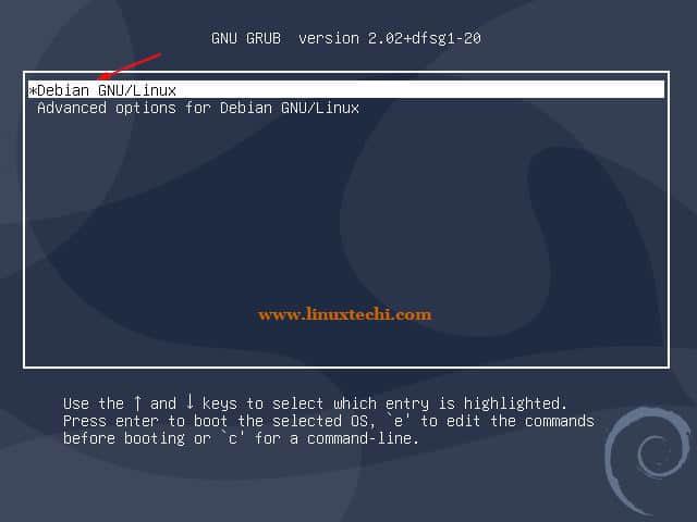 选择第一个选项 “Debian GNU/Linux” 并敲击回车键。